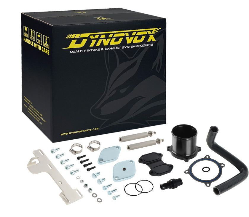 The DynoVox 2010-2014 Dodge Ram 6.7L Cummins Throttle Valve Cooler EGR Delete Kit eliminates restrictive factory components to dramatically improve performance, efficiency, and longevity for your 6.7L Cummins engine. This complete solution removes both the throttle valve cooler and EGR system to unlock your diesel's true potential.