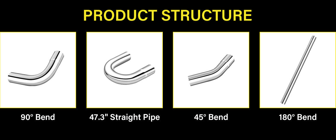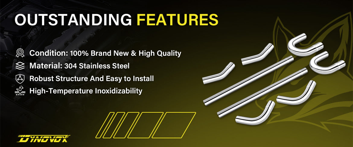 Upgrade your custom exhaust project with the 2.5" Universal DIY Exhaust Tubing Kit, crafted from premium 304 stainless steel for maximum durability and corrosion resistance. This comprehensive kit includes a variety of straight and mandrel-bent pipes, providing the versatility required for custom exhaust fabrication, modifications, or repairs on a wide range of vehicles.