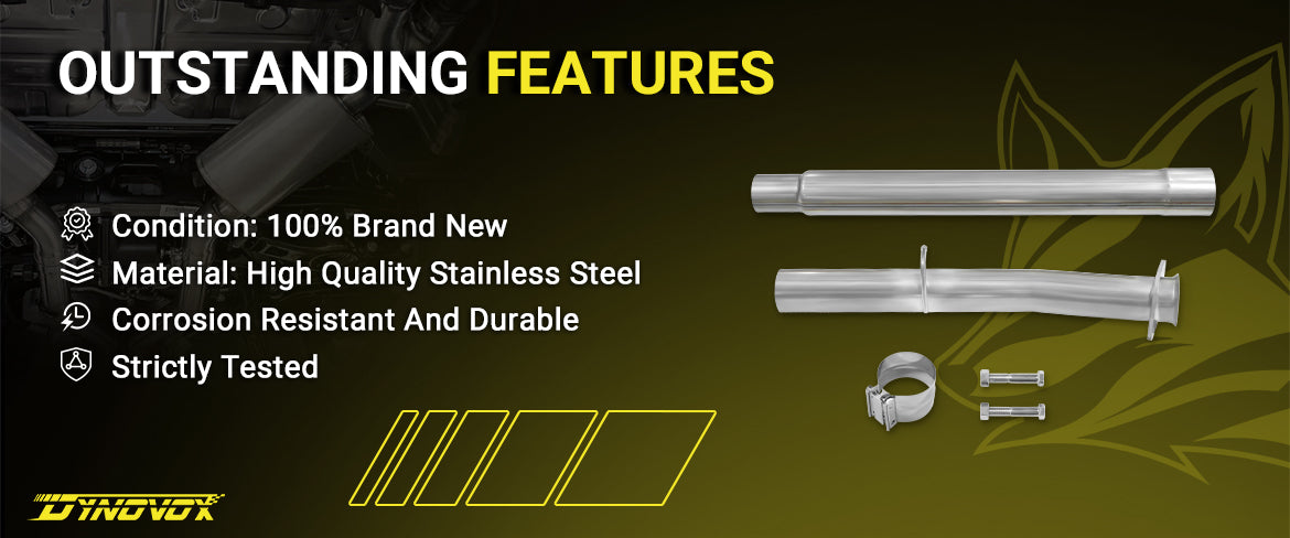 The DynoVox 4-inch Exhaust is made of high quality T-409 stainless steel with a thickness of 2 mm. It is rigorously tested for corrosion resistance and durability to ensure long term stable operation. The aluminized silver finish is not only aesthetically pleasing, but also provides excellent performance.