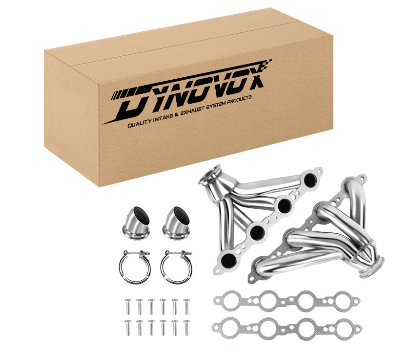 The DynoVox Exhaust Header for 1923-1967 Chevrolet LS Universal Swap Conversion is designed for LS1, LS2, LS3, and LS6 engine swaps, providing optimized exhaust flow and improved performance. Crafted from high-quality stainless steel with a silver polished finish, it ensures durability and corrosion resistance. The precision-engineered design enhances horsepower and torque, making it an ideal upgrade for classic car restorations or high-performance builds. This bolt-on header offers a universal fit for various Chevrolet models, simplifying the LS swap process and improving overall exhaust efficiency.