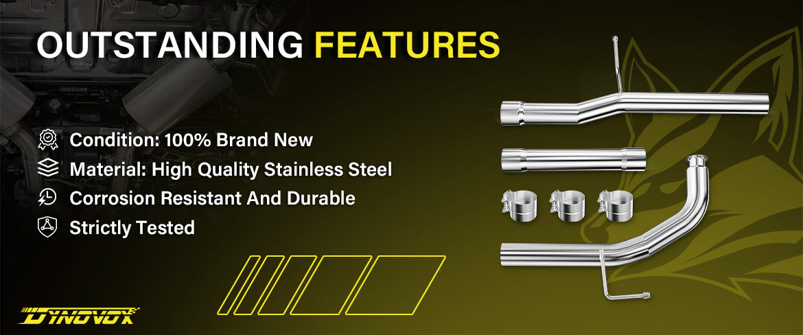 The DynoVox 4-inch Exhaust is made of high quality T-409 stainless steel with a thickness of 2 mm. It is rigorously tested for corrosion resistance and durability to ensure long term stable operation. The aluminized silver finish is not only aesthetically pleasing, but also provides excellent performance.