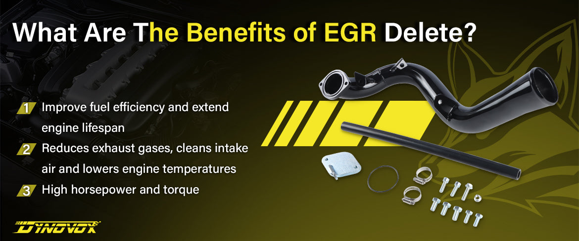 Deleting the EGR system reduces carbon buildup and improves airflow to the engine. This will result in better performance and you may experience improved throttle response, increased horsepower, and greater fuel efficiency. Another benefit is increased reliability.