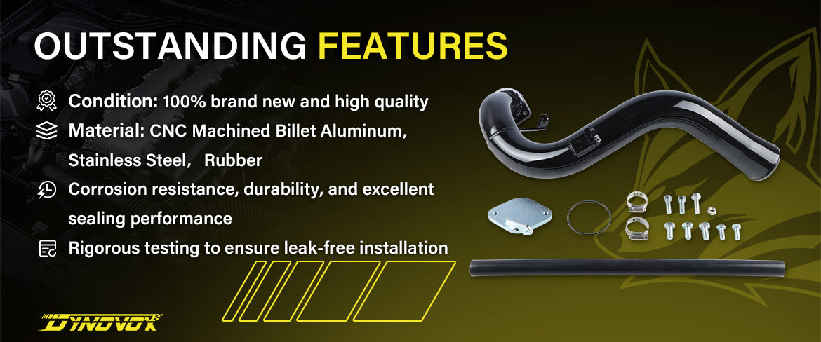 The DynoVox 2006-2007 6.6L Duramax LBZ EGR Delete Kit with High Flow Intake Elbow is designed to maximize your diesel engine’s performance. This kit removes the EGR system, reducing heat and carbon buildup, while the high-flow intake elbow improves airflow for enhanced horsepower and efficiency. Made from durable materials, it ensures easy installation and long-lasting reliability. Perfect for Duramax LBZ owners seeking better fuel economy, reduced maintenance, and optimized engine power. Upgrade your 2006-2007 LBZ with DynoVox for superior performance and durability.