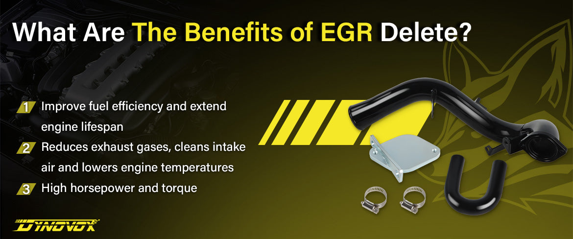 Deleting the EGR system reduces carbon buildup and improves airflow to the engine. This will result in better performance and you may experience improved throttle response, increased horsepower, and greater fuel efficiency. Another benefit is increased reliability.