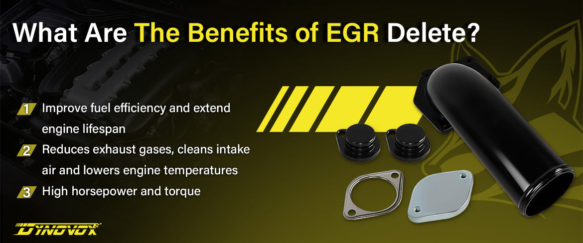Deleting the EGR system reduces carbon buildup and improves airflow to the engine. This will result in better performance and you may experience improved throttle response, increased horsepower, and greater fuel efficiency. Another benefit is increased reliability.